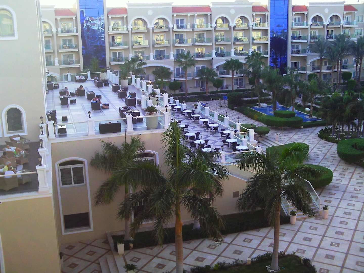 Ausblick vom Zimmer 2510Oben die Terrasse von der Lobbybar, unten der Außenbereich vom Hauptrestaurant.