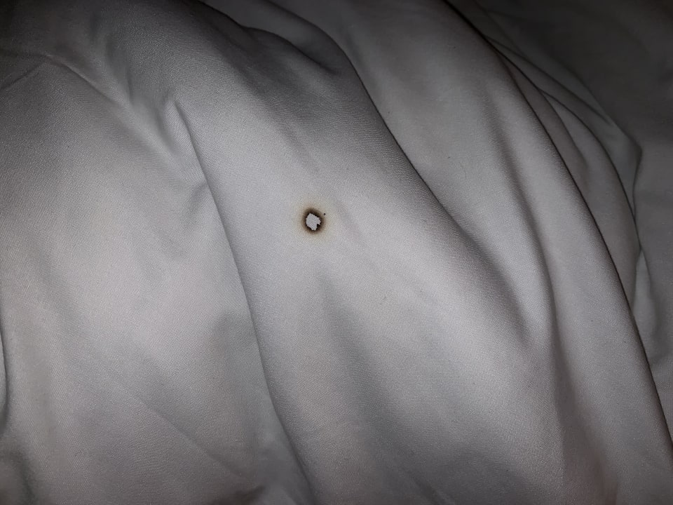 Brandfleck auf der Decke vom Stockbett.