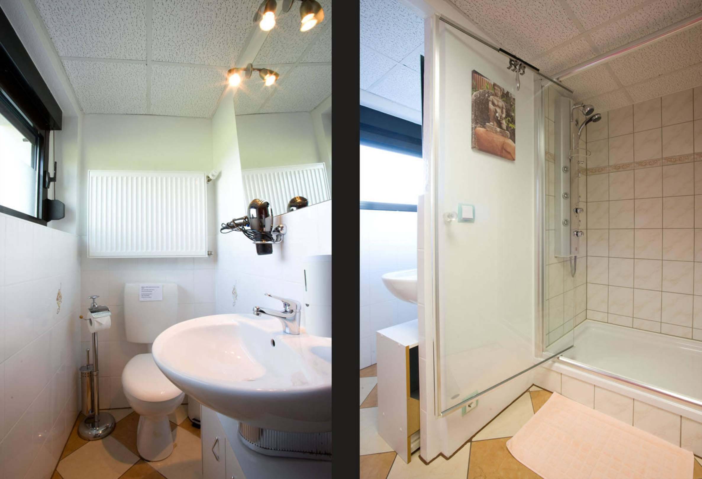Dusche und optisch abgetrenntes WC