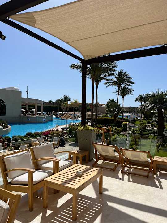 Außenbereich am Pool von der Lobby aus