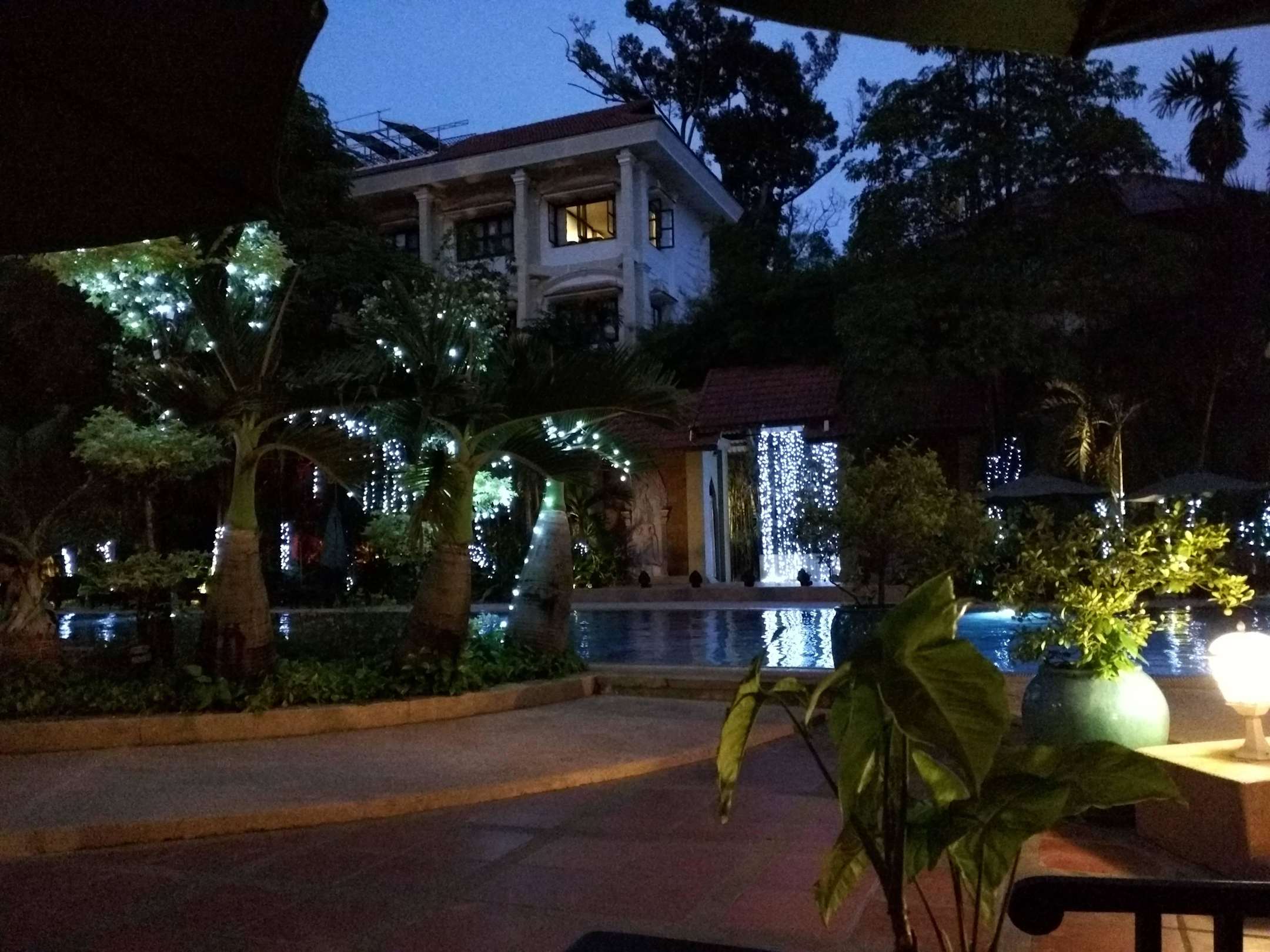 Pool area at night