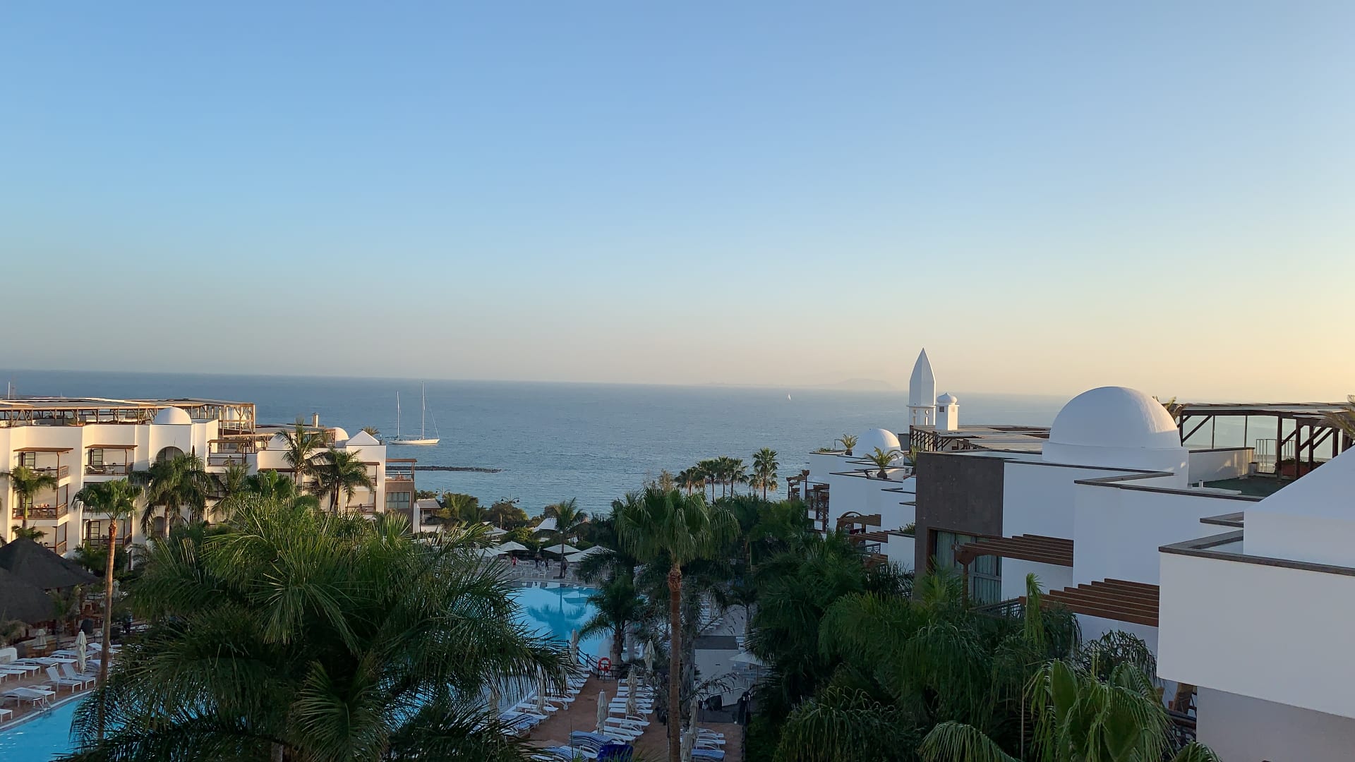 Blick aus dem Zimmer, man sieht den Calima bereits nahen....