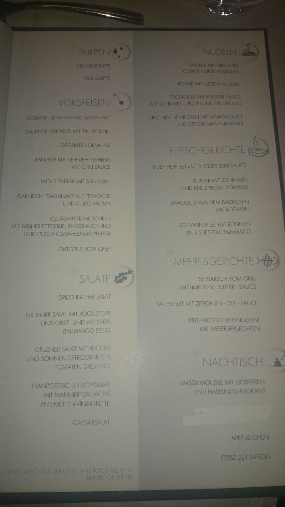 Karte im Moonlight Restaurant