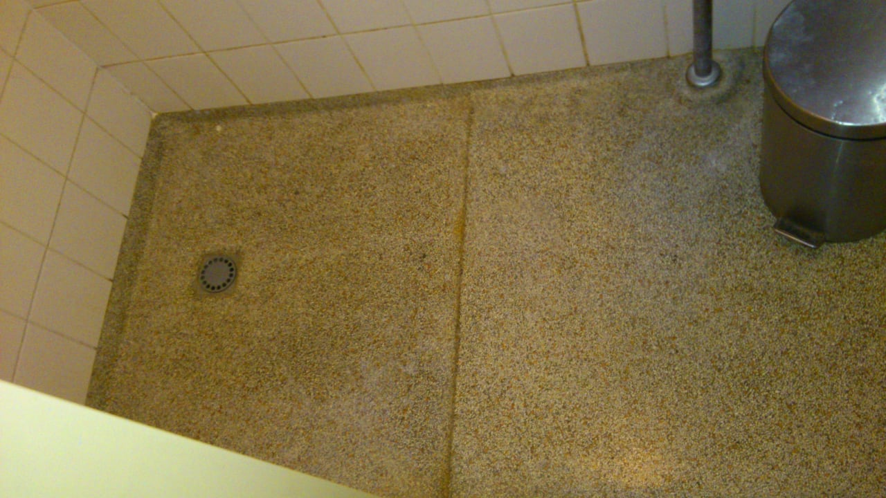 Das Bad mit Dusche das Waschbecken ist verstopft