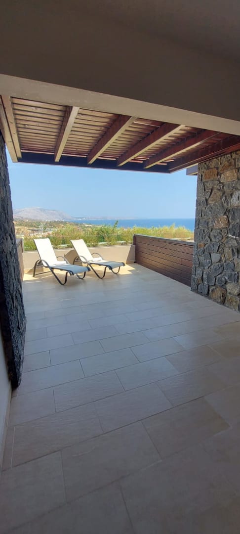 Riesiger Balkon mit 2 Liegen und 1 Tisch mit 3 Stühlen