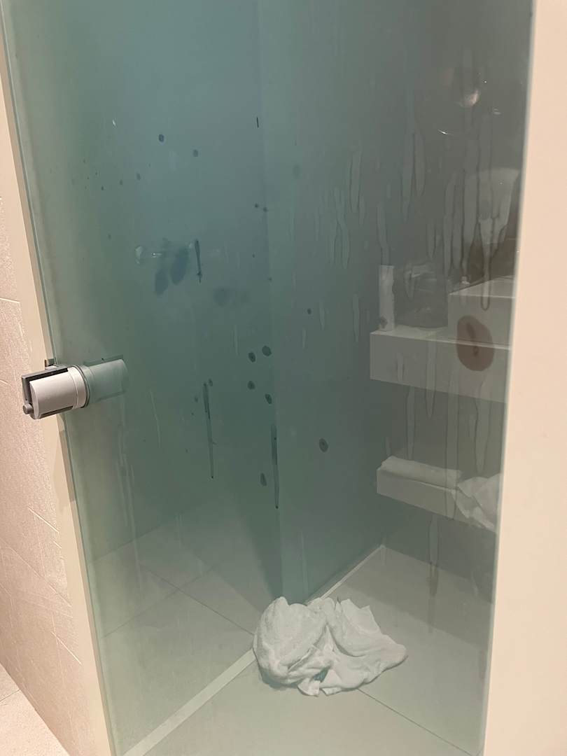 das war die badtür ab dem ersten tag..waren leider 10tage dort und hat am l0 tag gleich ausgesehn.. zimmer reinigung unter aller … balkonfliesen wurde in den 10tagen nicht einmal was gemacht