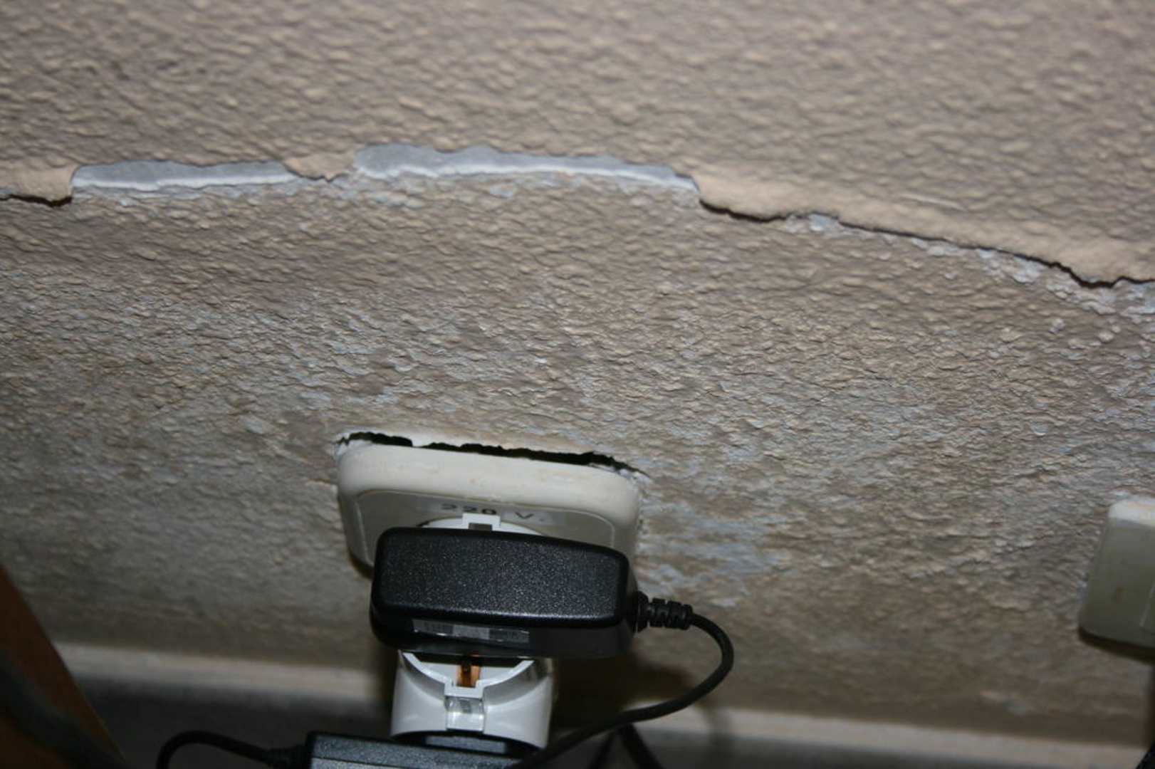 SteckdoseDie Steckdose war nicht richtig befestigt. Überall im Zimmer platzte die Farbe ab.