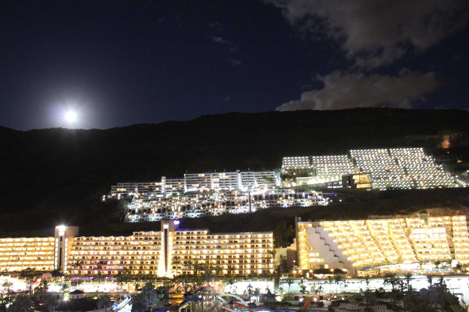 Mondschein - Nachtaufnahme vom Zimmer Balkonnur durche eine sehr hohe Belichtungszeit erscheint wirkt der Himmel sehr hell