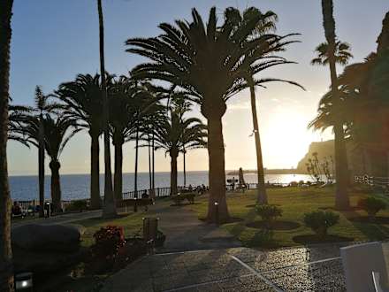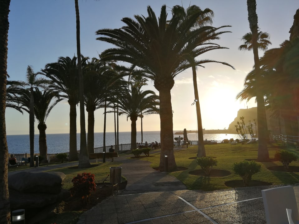 Gartenanlage bei Sonnenuntergang