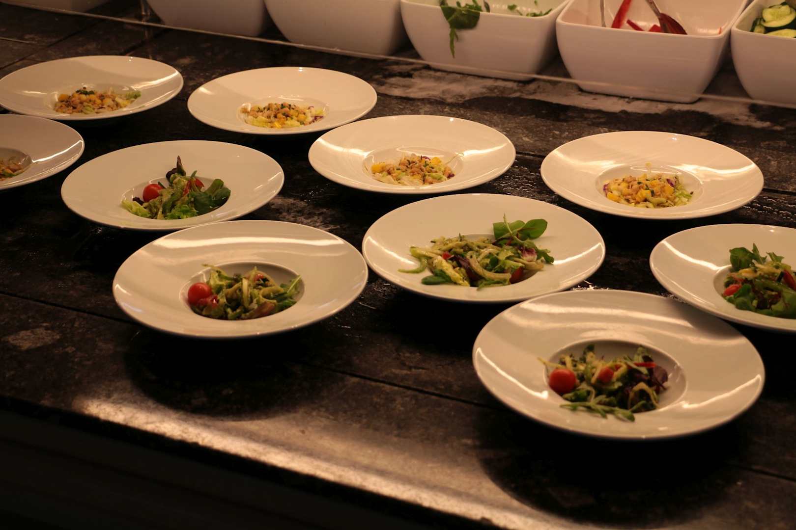 Fertig zusammengestellte Salate als Ergänzung zum Salatbuffet