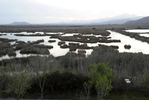 Abendlicher Blick über den Naturpark zu den Bergen