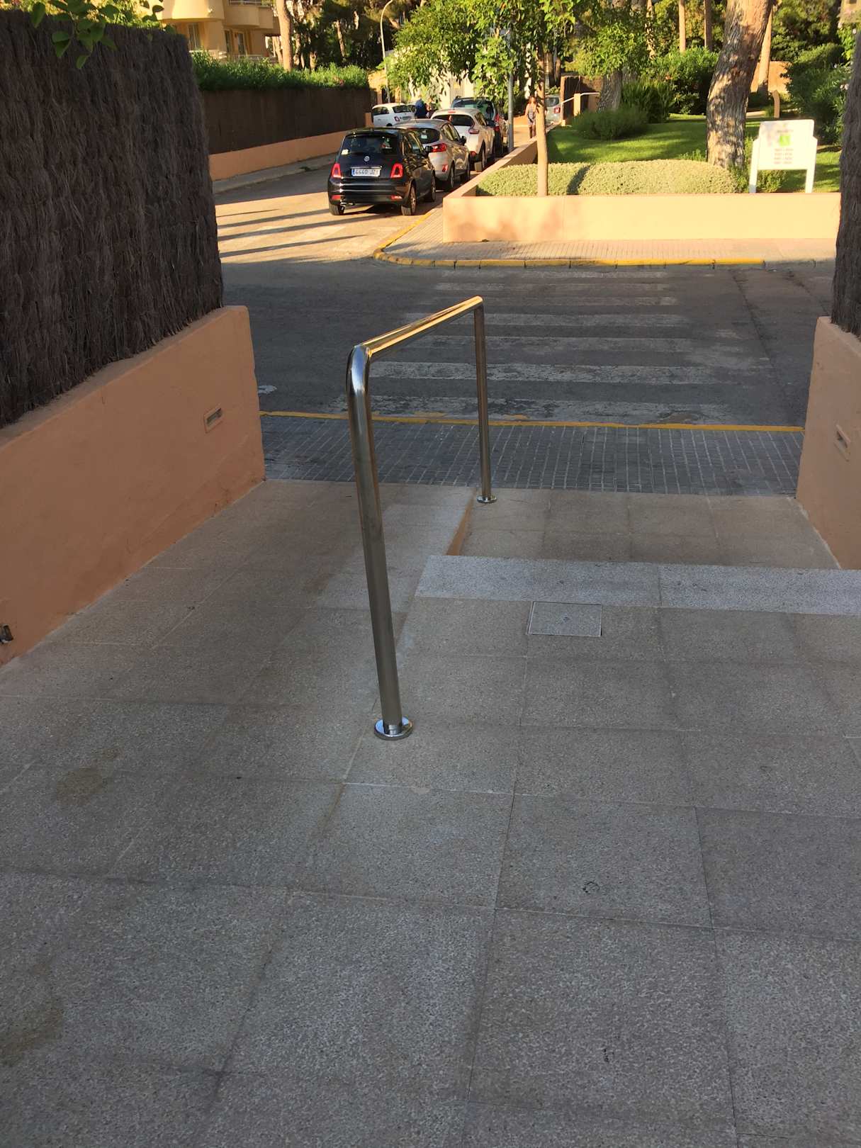 Der Weg vom Restaurant, vorbei am Pool und über die Straße zum Zimmer.