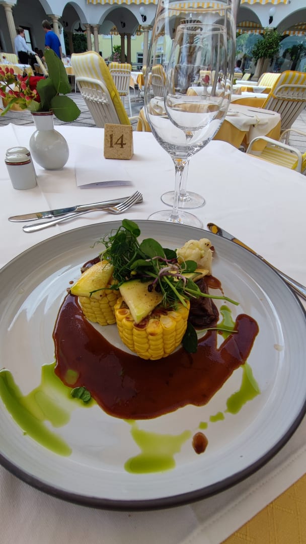 Das Lamm Filet liegt hinter den Maiskolben es war fantastich