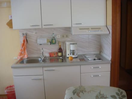 mit Kühlschrank, 2-Platten-E-Herd, Spüle, Kaffeemaschine
