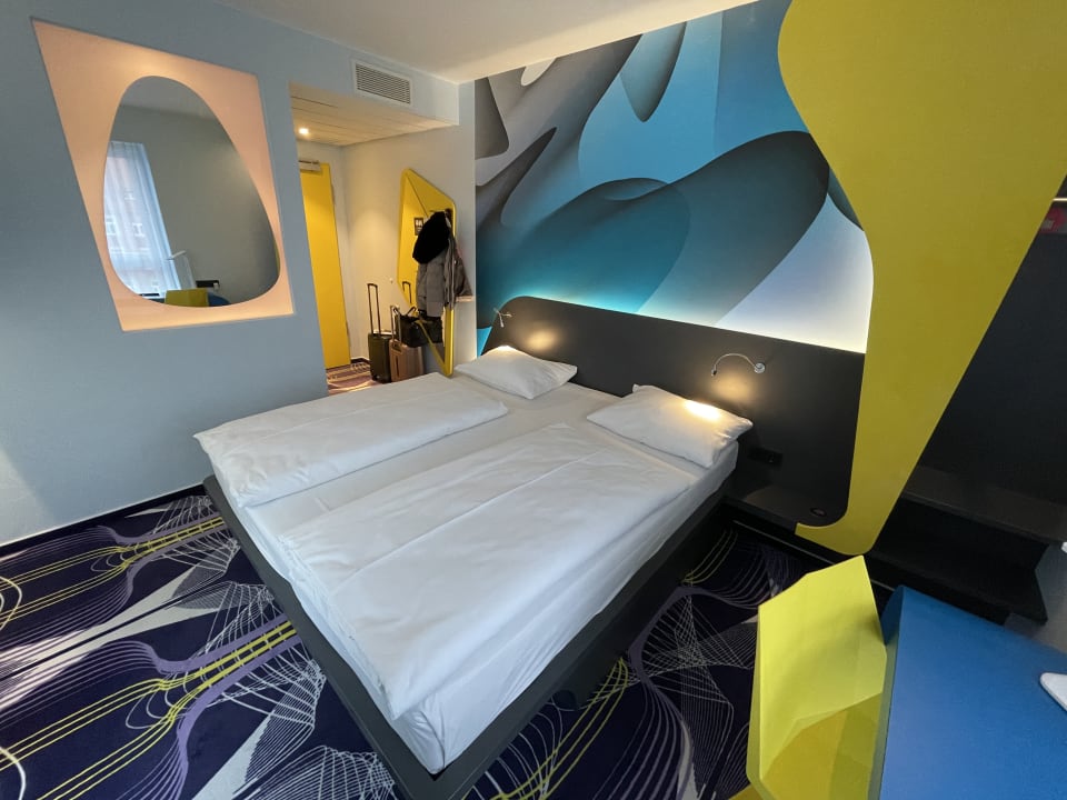ZimmerDas Glas rund um den Spiegel lässt Tageslicht ins Bad aber leider auch nachts Licht aus dem Bad in den Schlafraum.