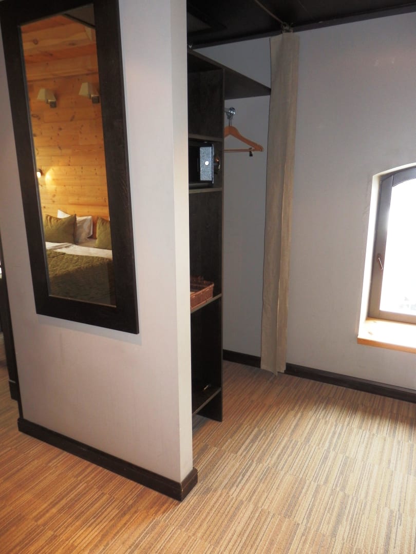 Vorraum zum Zimmer mit Garderobe, Schrank und Safe