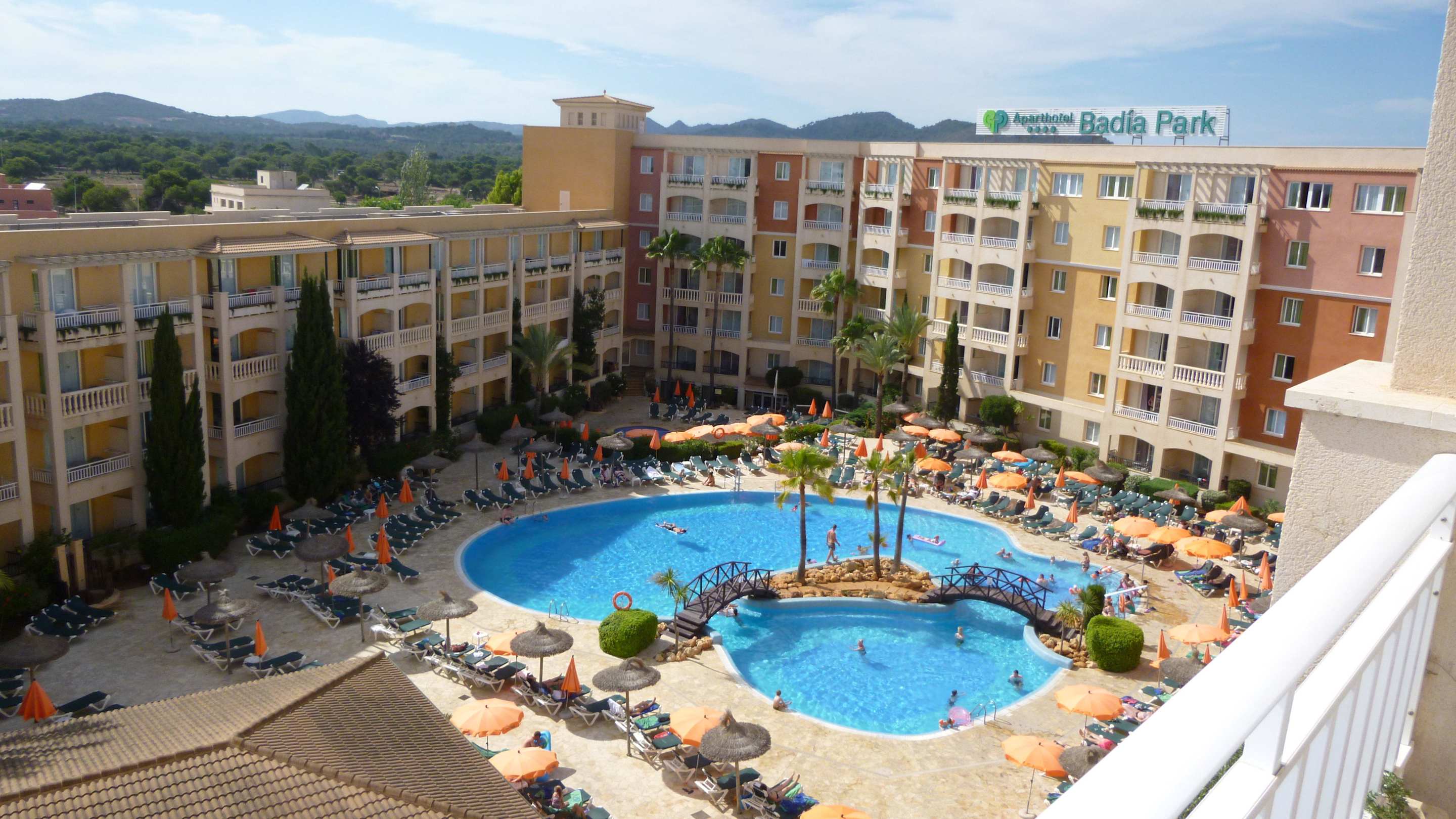 Blick auf den Pool vom Balkon aus