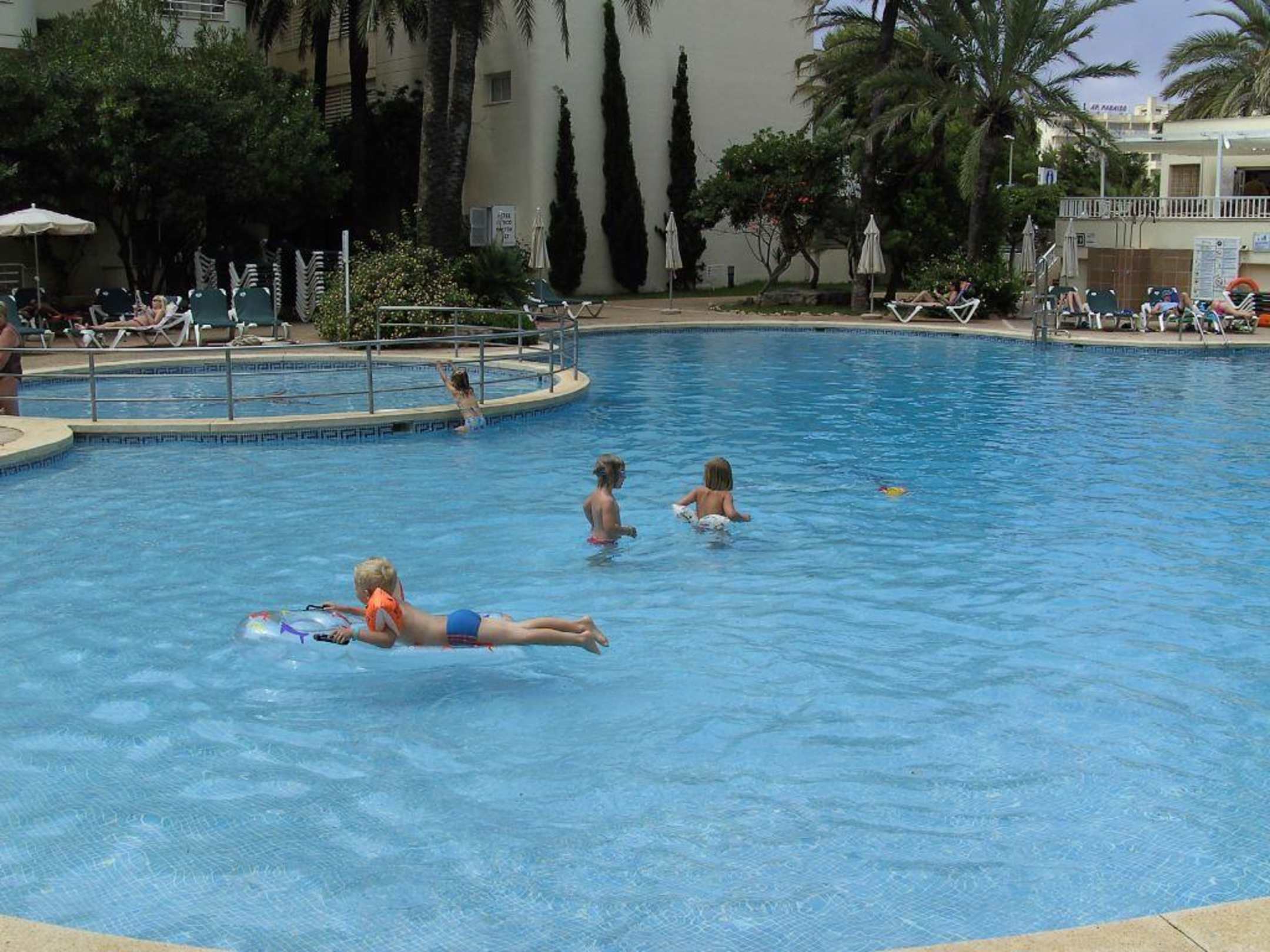 Hier sieht man den Pool mit dem flachen Kinderbecken dahinter