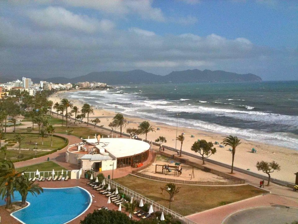 Blick vom 6. Stock zum langen Sandstrand der Calla Millor... die vom Balkon aus sichtbar vorhandenen Anlagen haben mit dem Hotel nichts zu tun ..