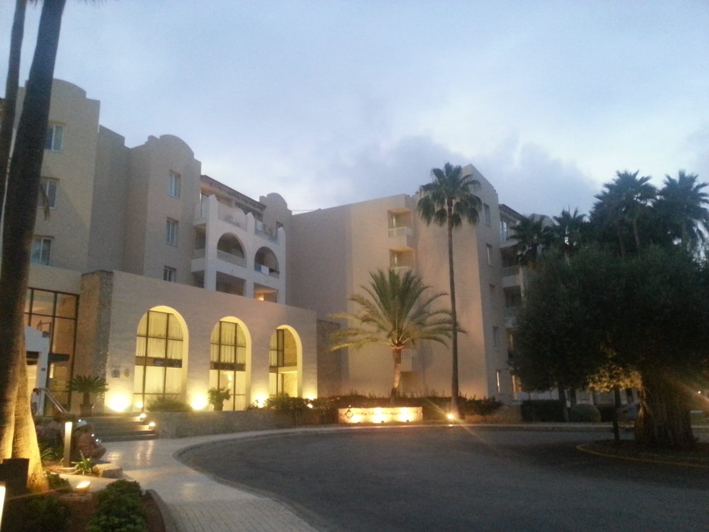 Devant l'entrée de l'hôtel