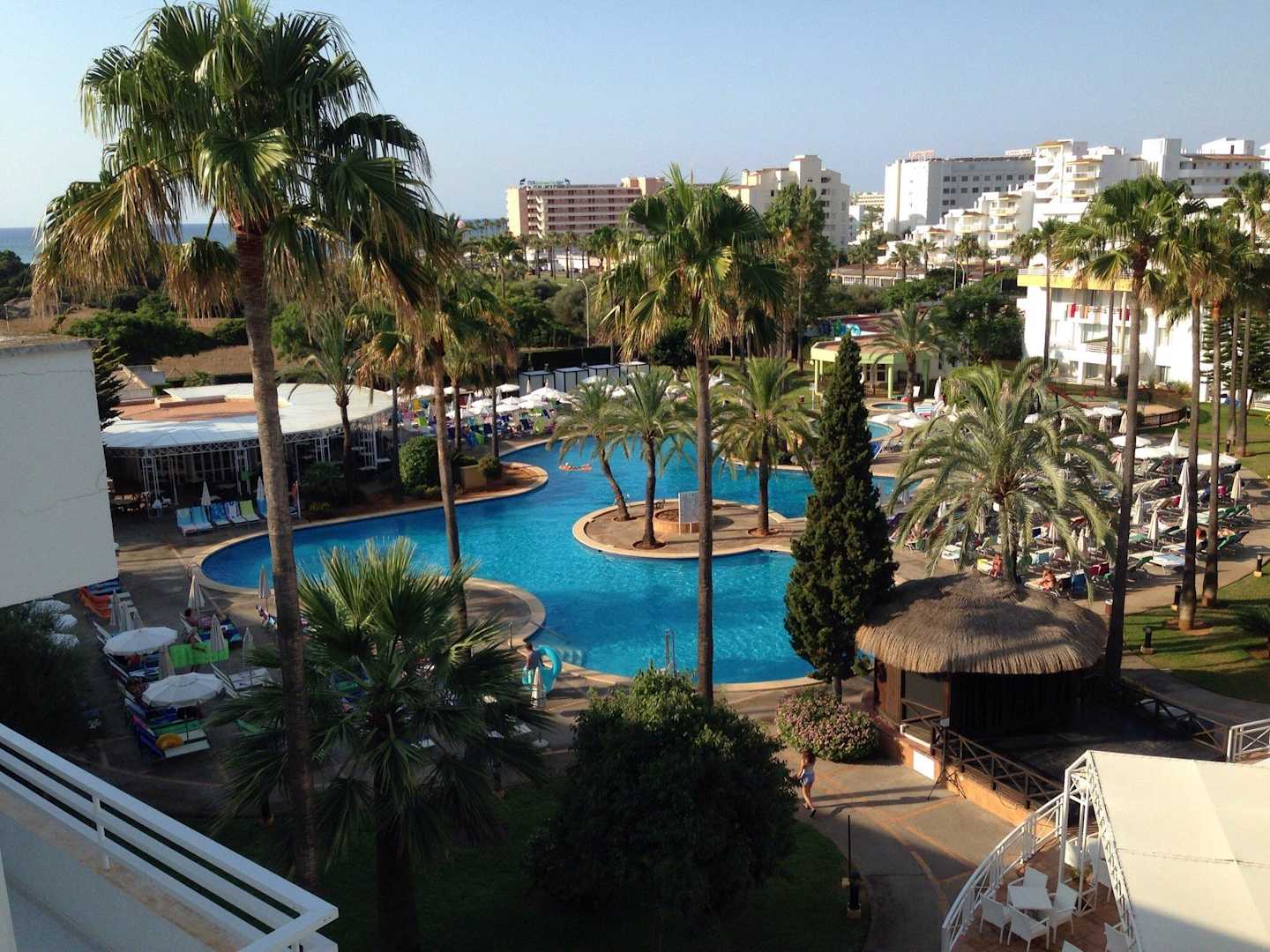 Blick aus dem vierten Stock auf die Poolanlage