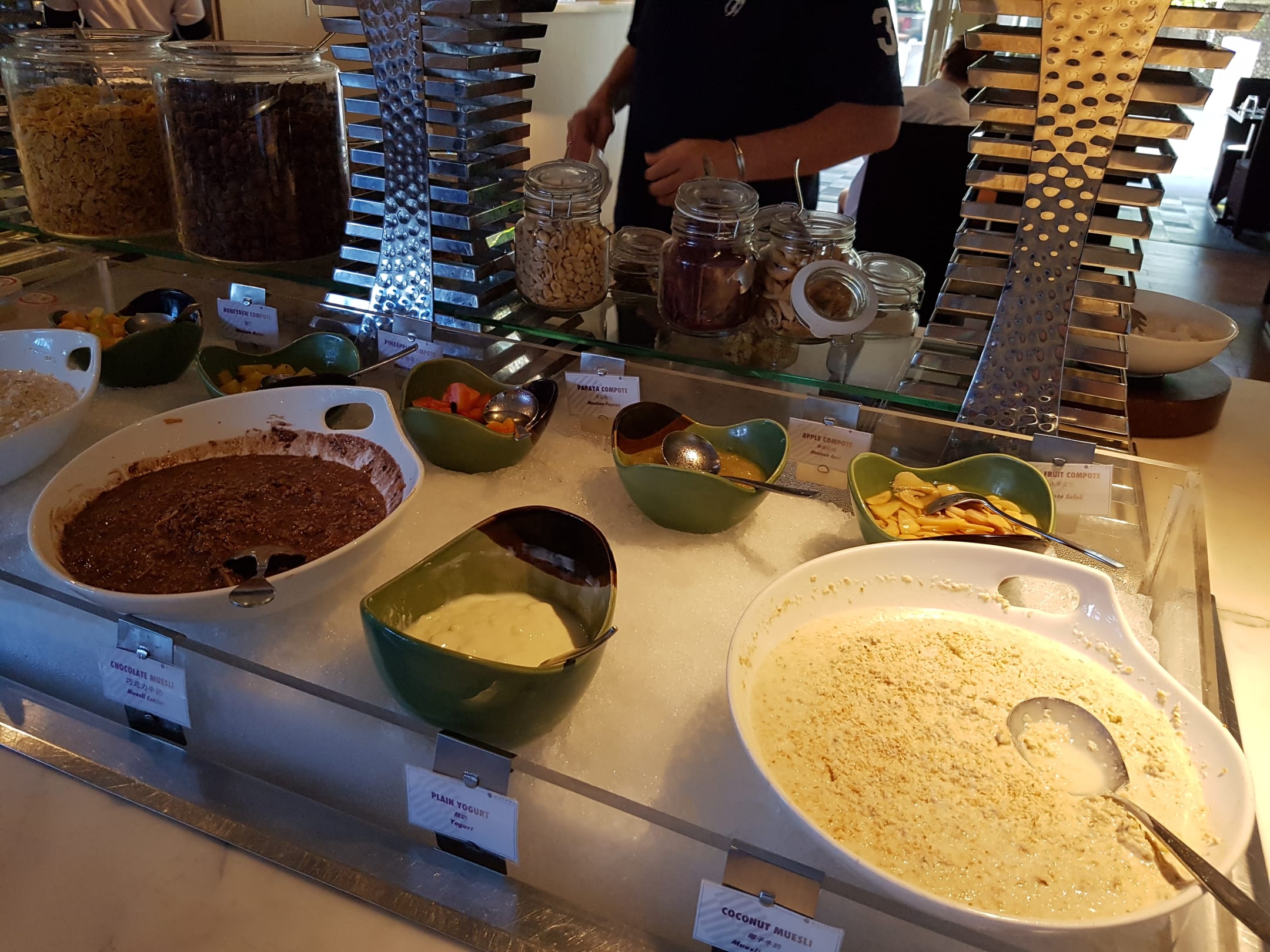 Frühstück: Schokomüsli und Kokosmüsli im Bircher-Style.