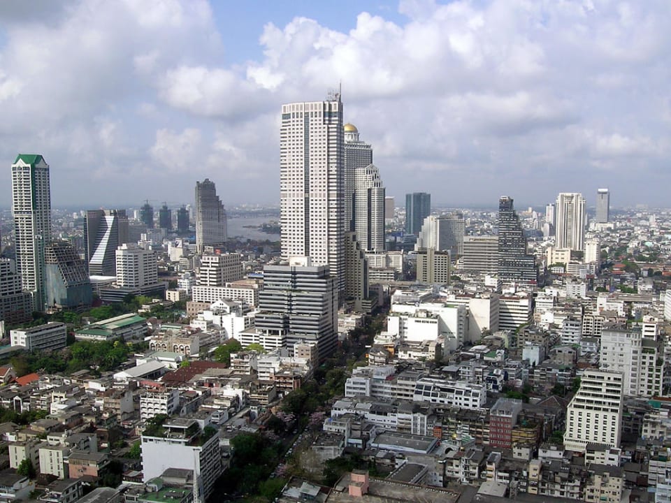 Blick aus dem Hotel "Sofitel Silom" über die Silom Road in Richtung Chao Praya River