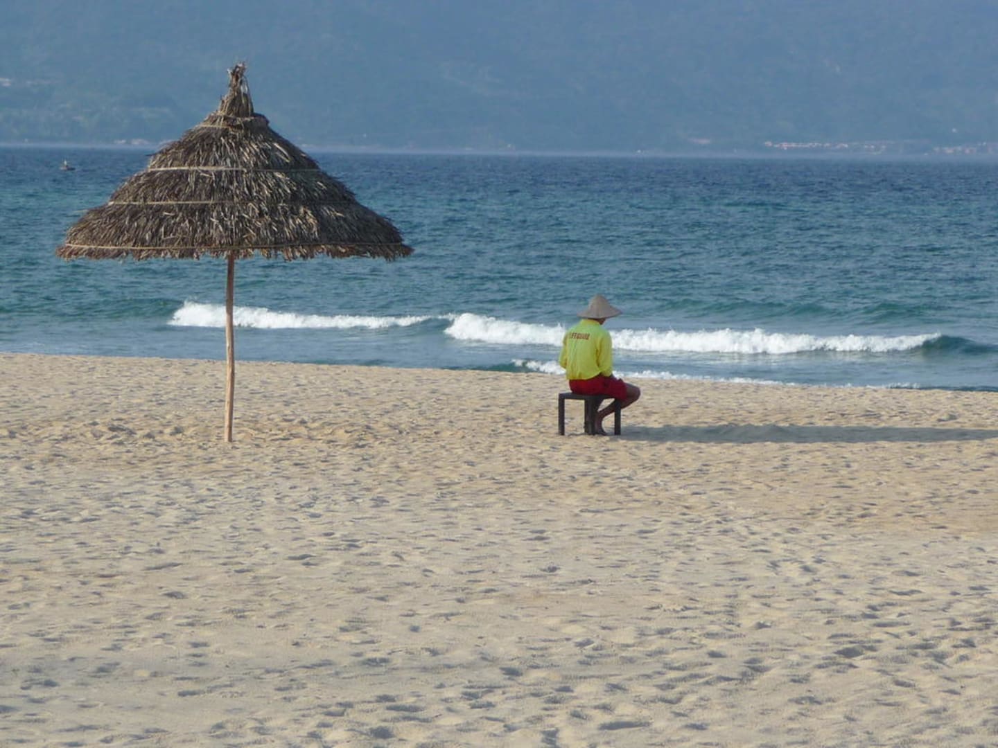 Von morgens bis abends war der Strand bewacht von einem Life Guard. Er hatte (leider oder Gottseidank) nichts zu tun.