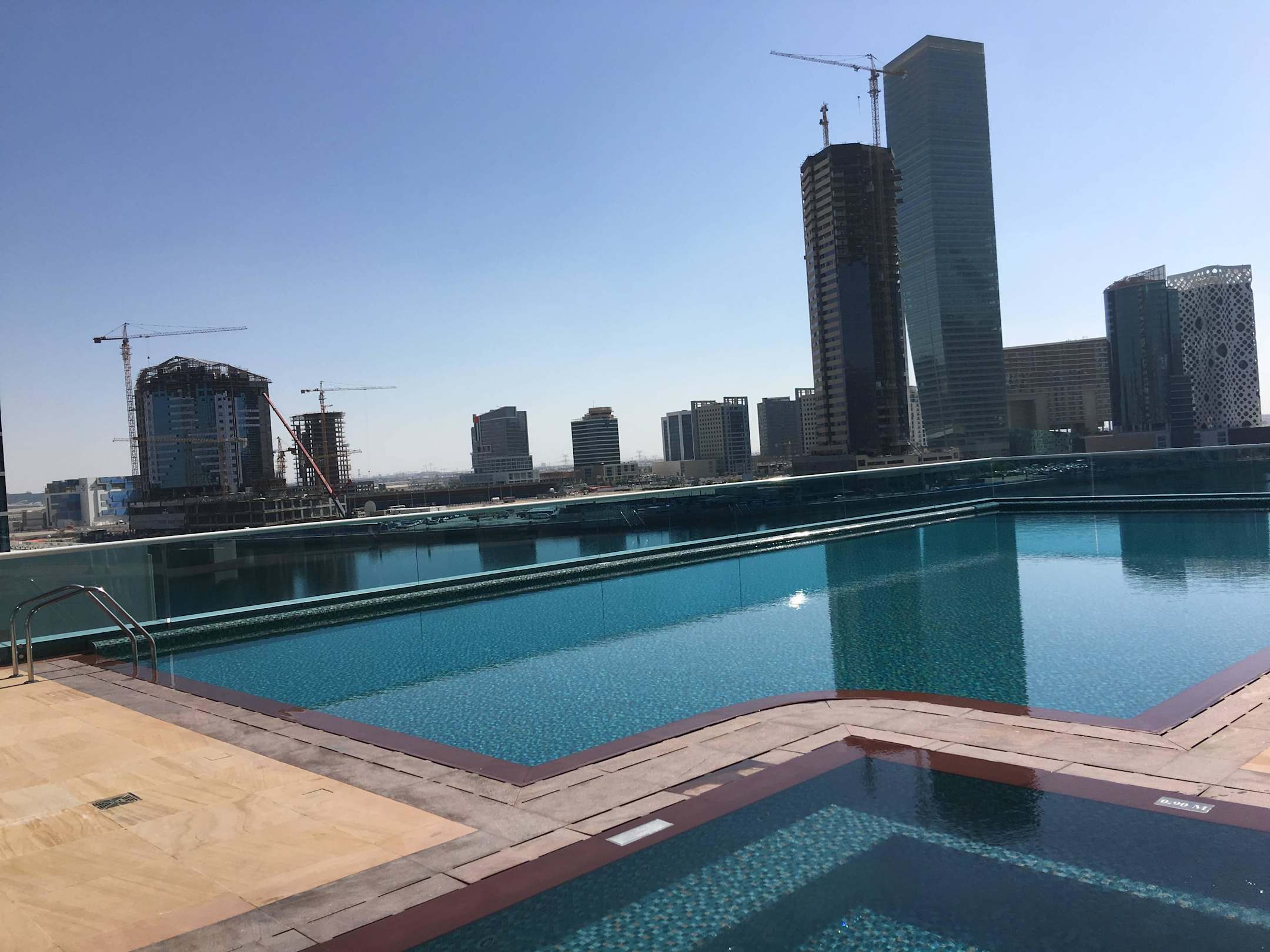 Schöner Pool mit Blick auf Baustellen