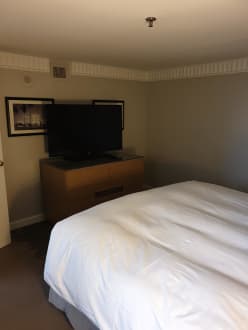 Blick vom Bett auf TV