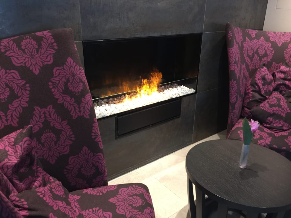 Netter Fake-Kamin - Lobby großzügig und gemütlich, etliche Sitzmöglichkeiten und Wartebereiche.