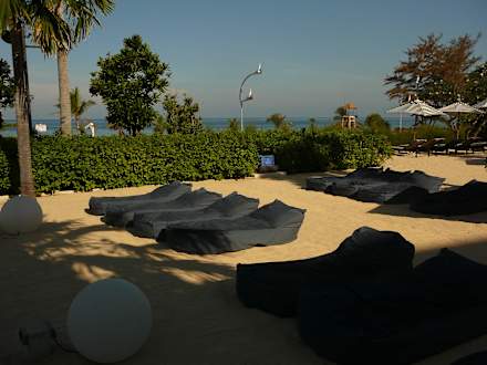 Sunbeds am großen Pool und in Strandnähe;