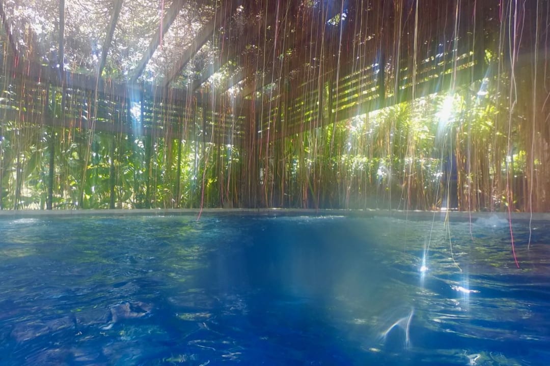 Whirlpool am oberen Pool beschattet von vielen kleinen Luftwurzeln