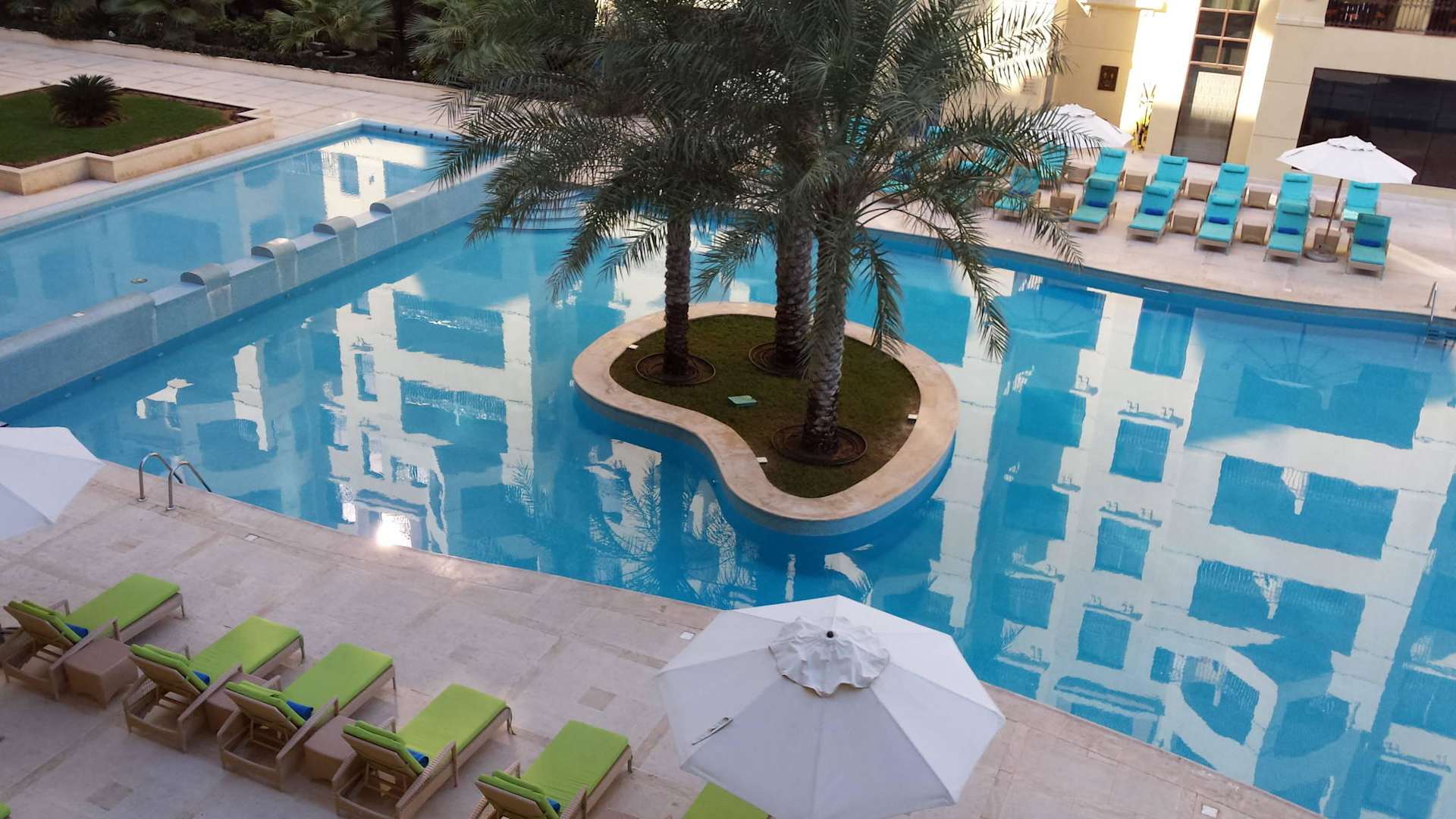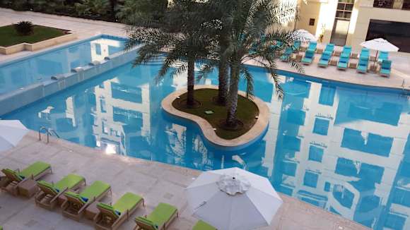 Blick vom Hotelzimmer auf den Pool