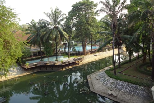 Blick Richtung Restaurant und Pool