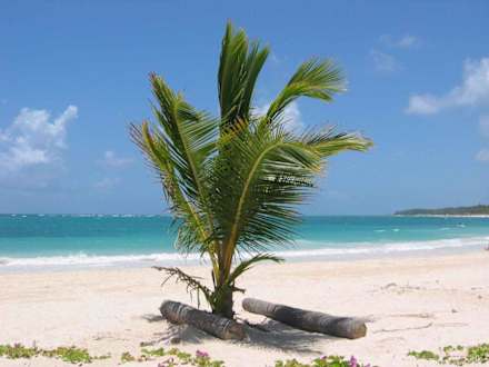 Palme am StrandEine der vielen Palmen am Strand und Blick auf das herrliche Meer. Die meisten Palmen waren viel größer.