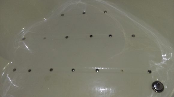 schmuddeliger Whirpool auf dem Zimmer, zudem fehlen einige der Noppen