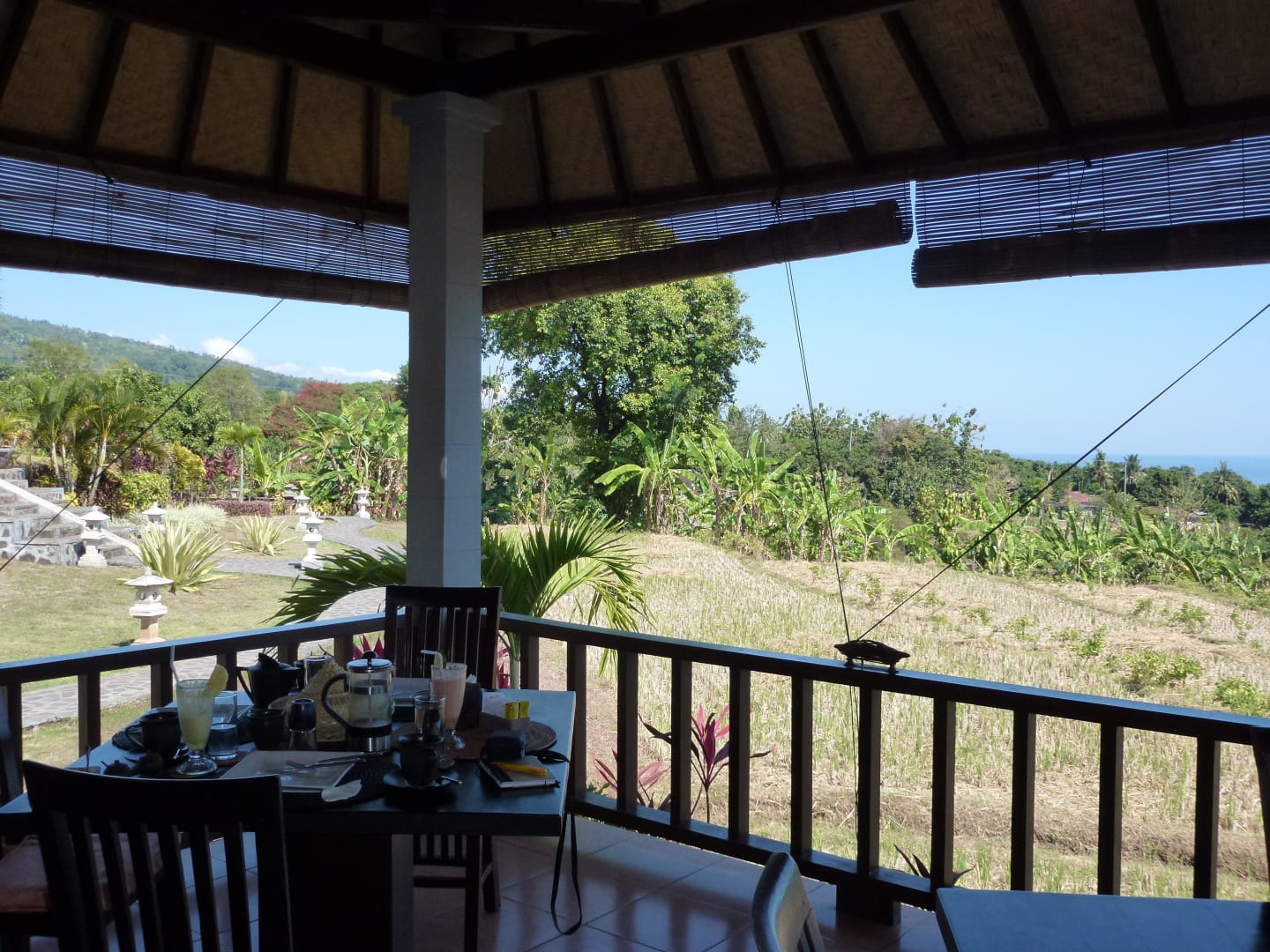 Ausblick von Restaurant morgens aufs Reisfeld