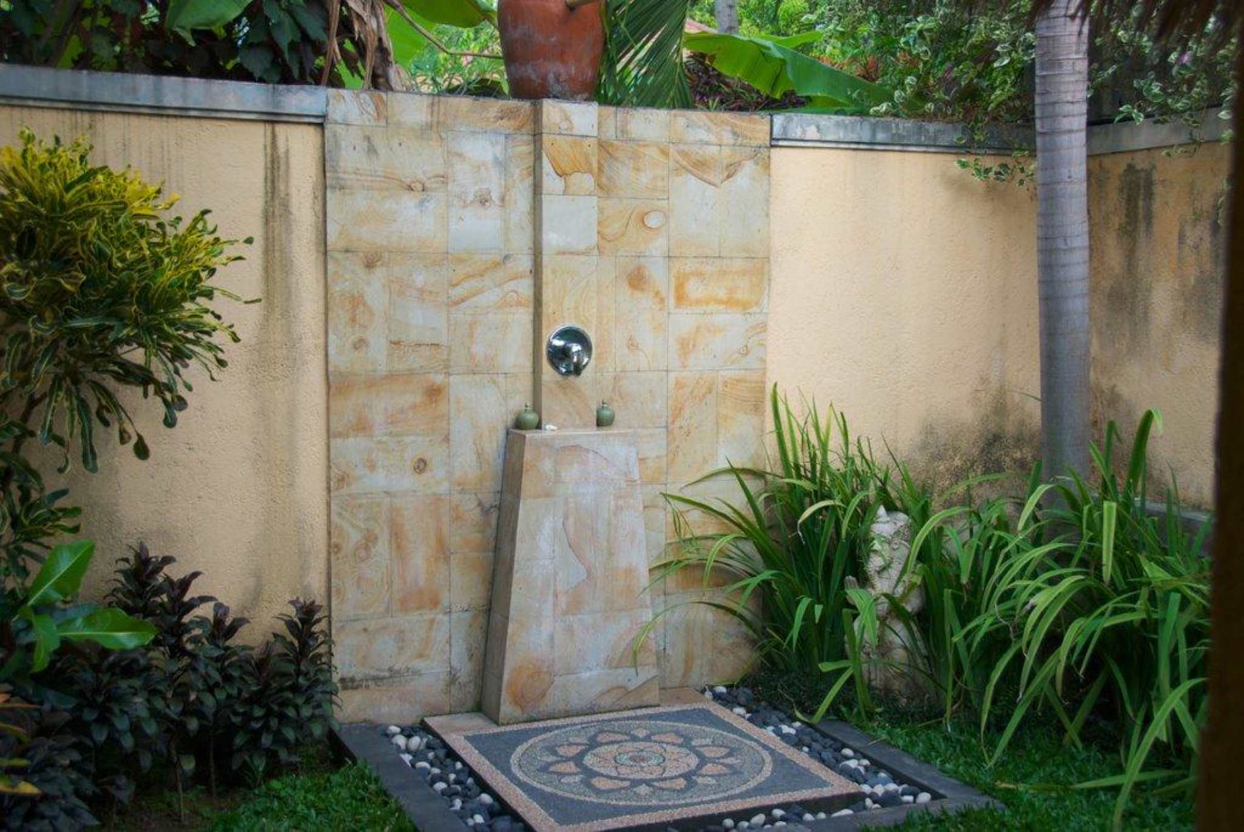 Die Aussendusche im abgegrenzten Bungalow