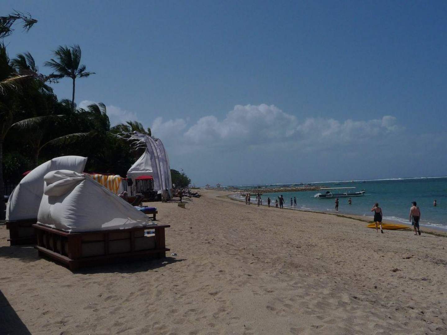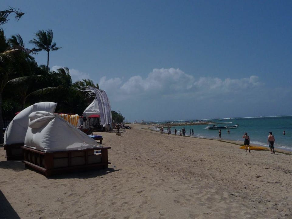 Am Strand stehen Liegen und ein paar sehr geräumige 'Familienliegen'.