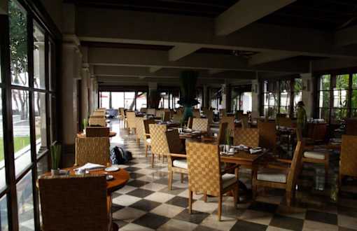 Der Frühstücksraum erstreckt sich über zwei Stockwerke