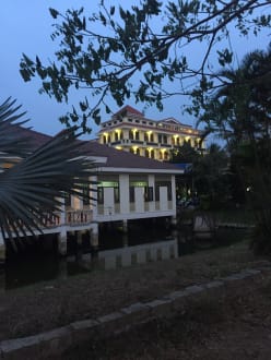 Ein Blick auf das beleuchtete Hotel