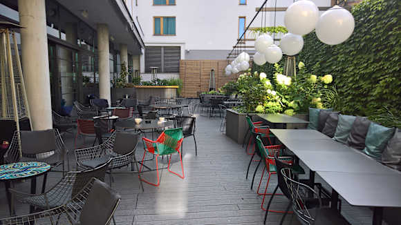 RestaurantInnenhof - Nachbarhäuser sind nicht in dem gleichen guten Zustand wie das Hotel ... aber das ist trotzdem sehr schön hier