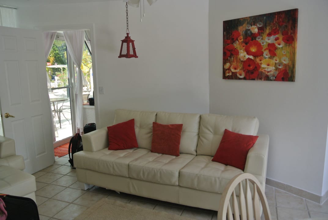 Gegenüber ein großer Flachbild-TV.