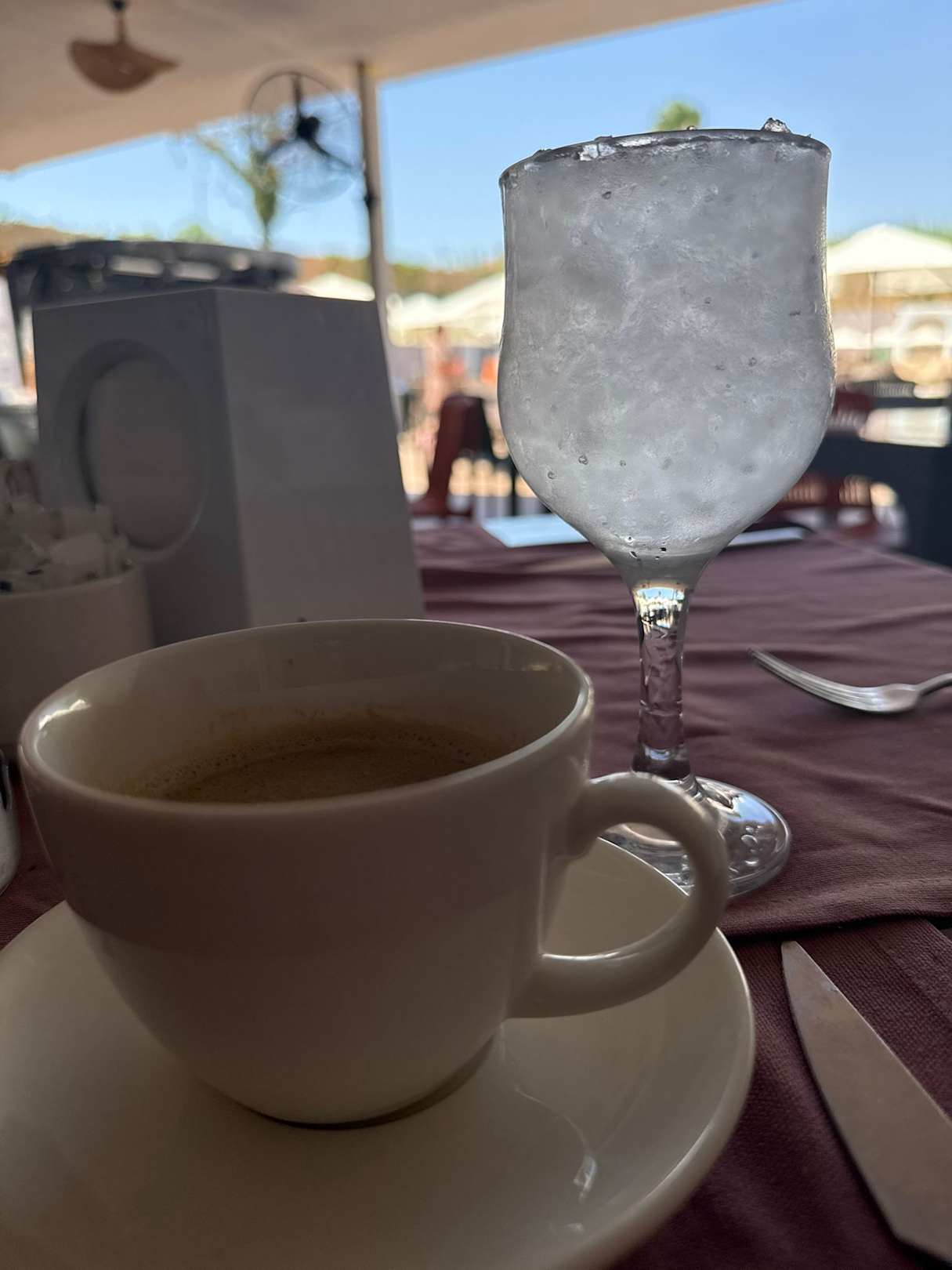Kaffe und Wasser an der Strandbar