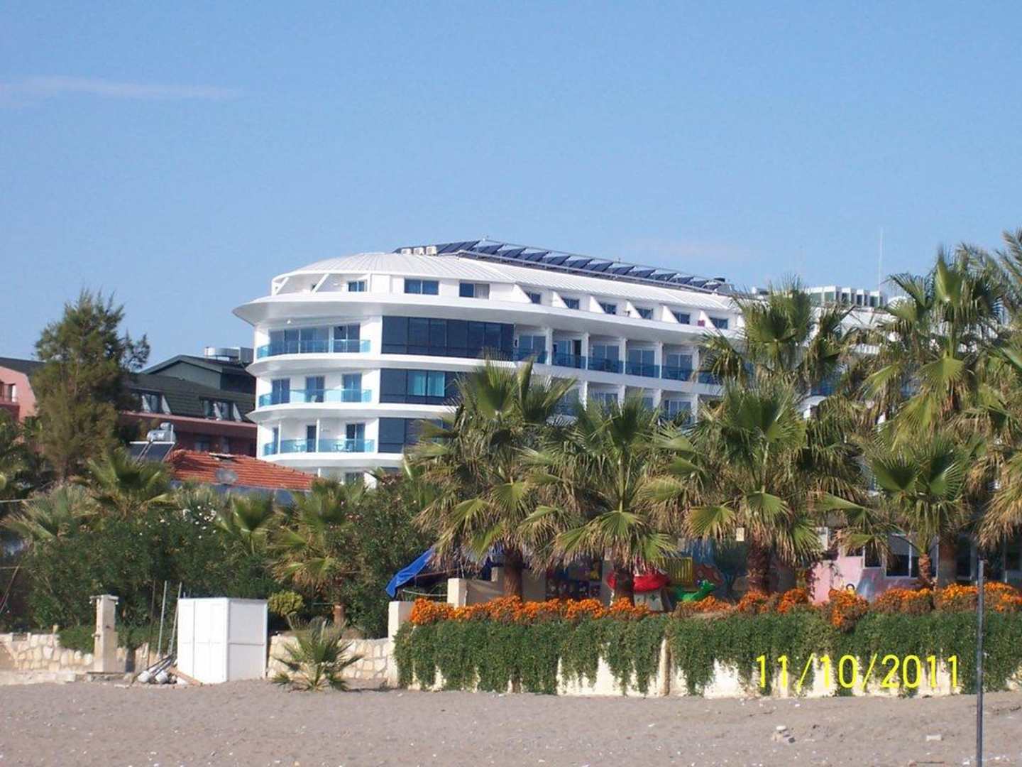 Blick zum Hotel vom Strand