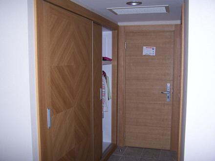 Zimmereingang eines Doppelzimmers mit Schrank auf der linken seite