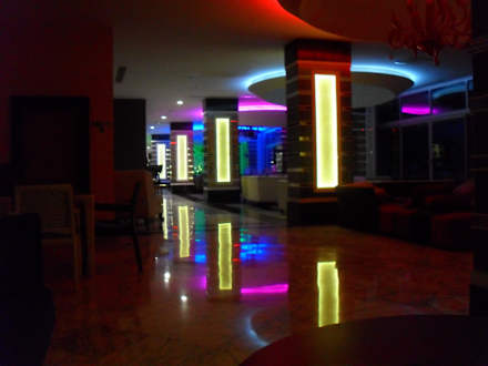 Weitere Leuchteffekte in den Sitzbereichen der Lobbybar am Abend.