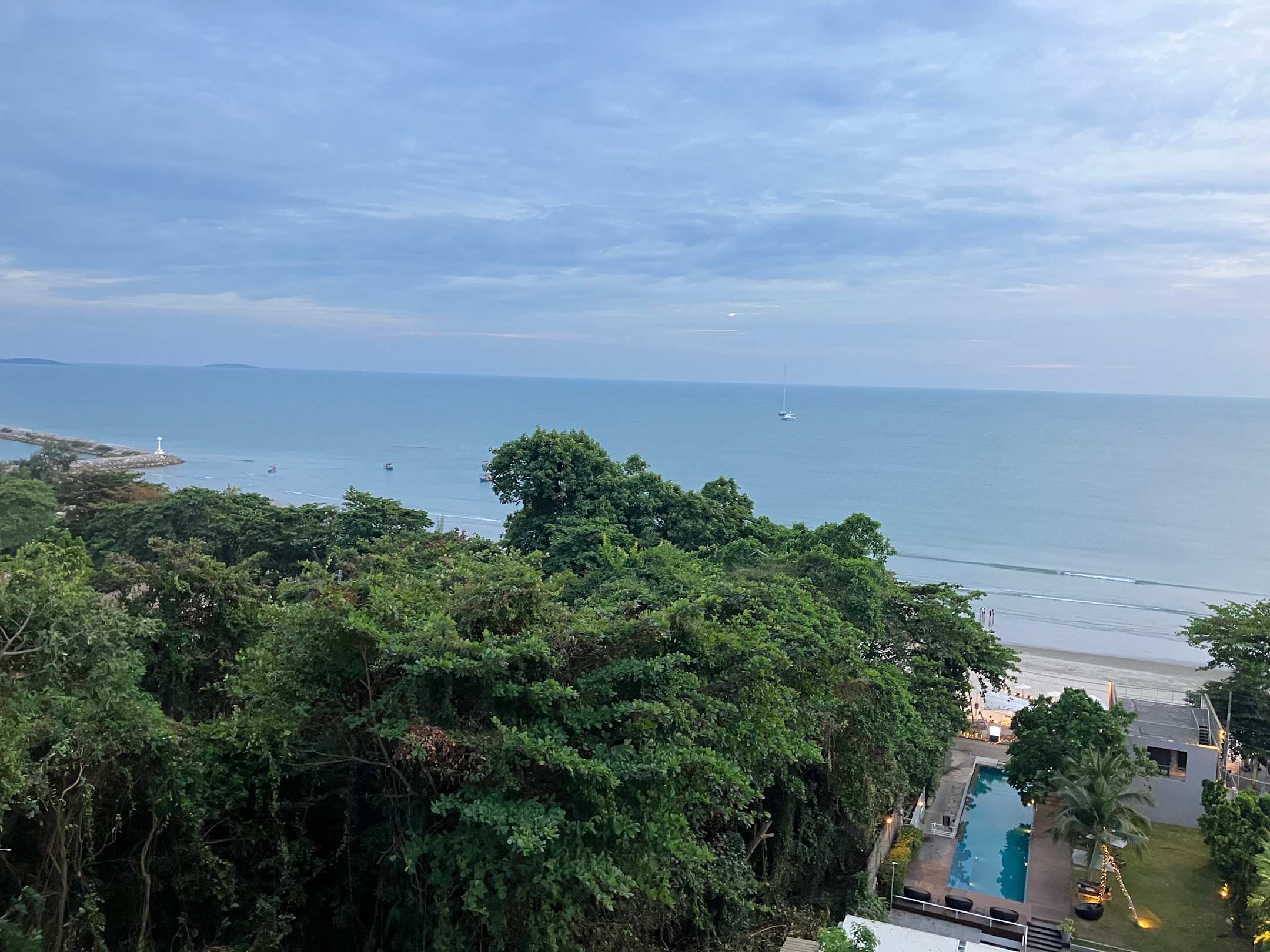 StrandDer Blick aus dem 7. Stock des Hotels auf den Strand. Für den ganzen Strand reichen nur drei Fotos aus. Auch der Pool ist zu sehen