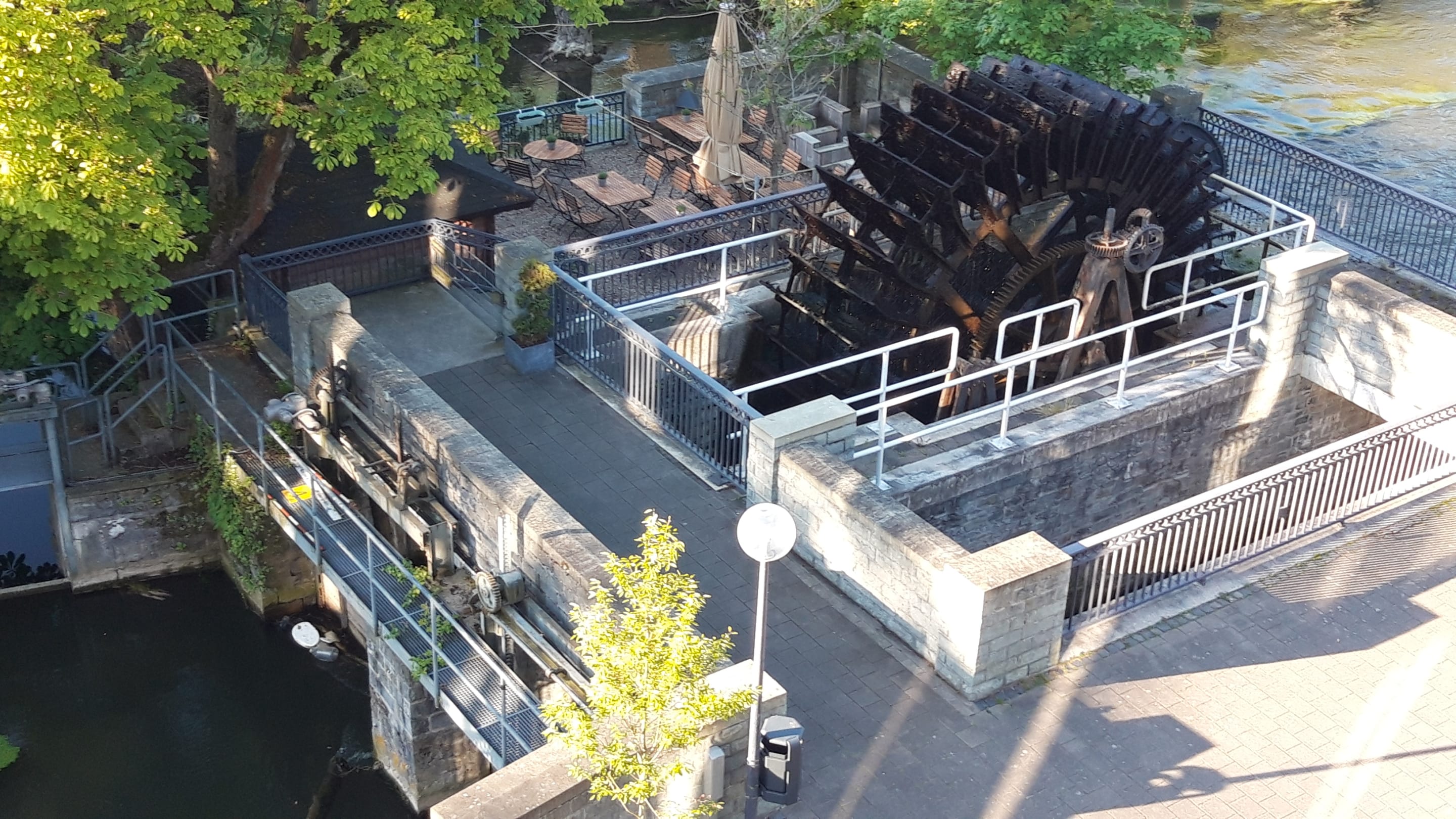 Blick von der Terrasse auf den Biergarten morgens